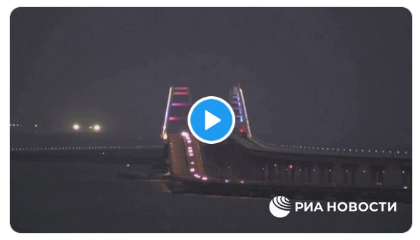 ロシア外務省は8日夜、ケルチ海峡にかかりクリミアとロシアをつなぐ大橋の車道部分で、車が通行しているように見える動画を公表した。