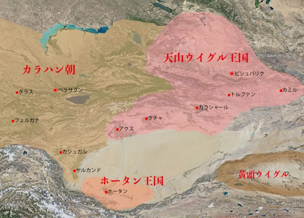 天山ウイグル王国 10世紀後半の天山ウイグル王国。 詳細は「天山ウイグル王国」を参照
