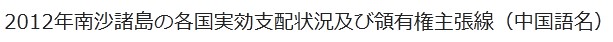 南沙諸島の各国実効支配状況(英語名) 2012年南沙諸島の各国実効支配状況及び領有権主張線(中国語名)