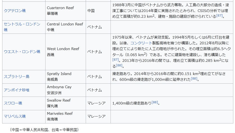 南沙諸島https://ja.wikipedia.org/wiki/%E5%8D%97%E6%B2%99%E8%AB%B8%E5%B3%B6