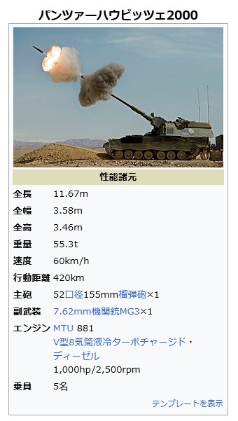 出典検索?:?”PzH2000自走榴弾砲”???ニュース?・ 書籍?・ スカラー?・ CiNii?・ J-STAGE?・ NDL?・ dlib.jp?・ ジャパンサーチ?・ TWL(2015年12月)』『パンツァーハウビッツェ2000(Panzerhaubitze 2000)は、1998年より配備されているドイツの自走砲である。略称は「PzH2000」。 』