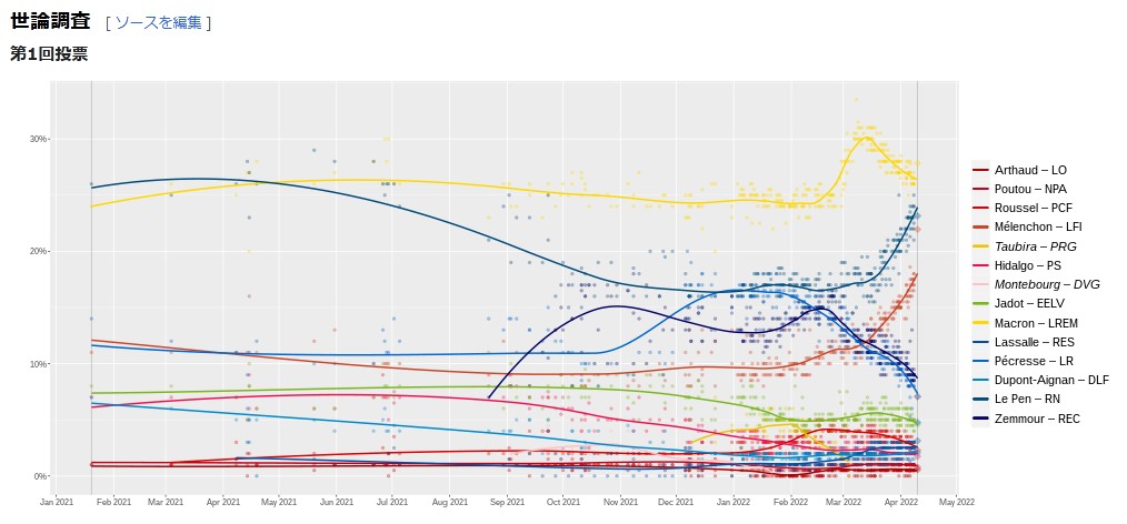e • d フランスの旗 2022年フランス大統領選挙 (第1回:2022年4月10日・第2回:2022年4月24日施行) 候補者 所属政党 第1回投票 第2回投票