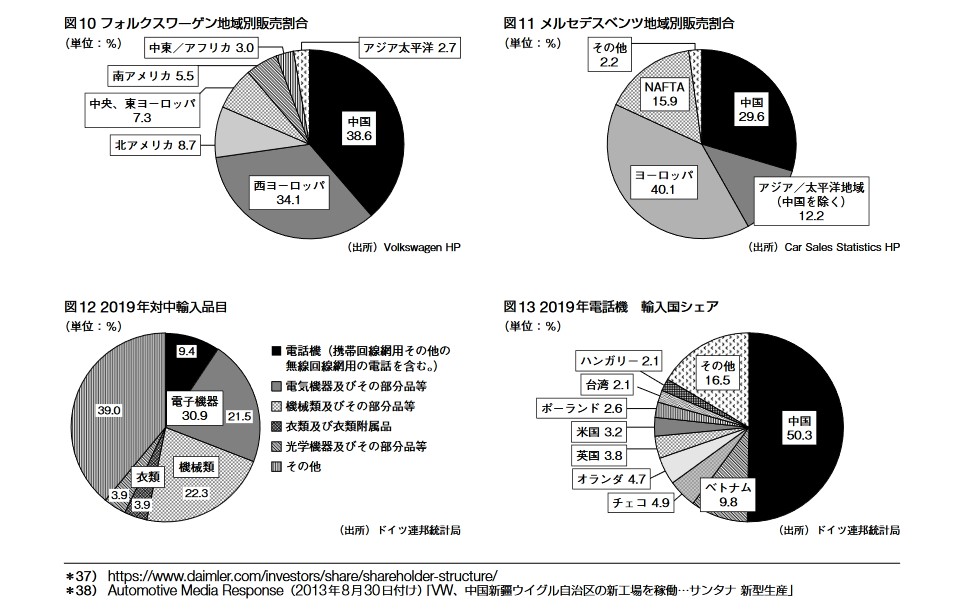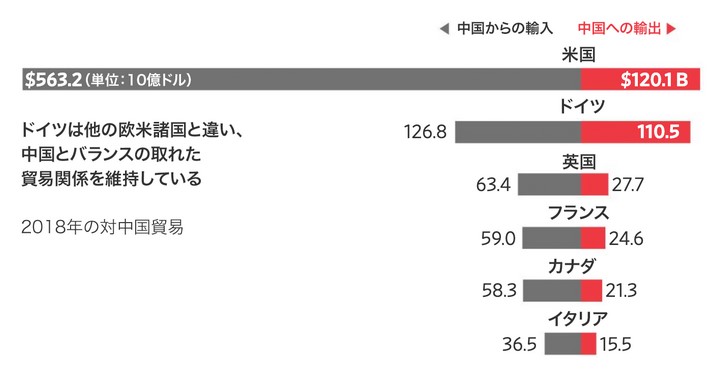中国は、世界最大の消費財製造拠点となるため、ほぼ20年間にわたってドイツの産業ロボット、産業機械、自動車を必要としてきた。ドイツ企業は、中国向け輸出の2桁の伸びは当然とみなしてきた。これが一因となり、今世紀初めの数年間にドイツの輸出額は中国と米国を抑えて世界最大だった。米国など各国の多くの企業が中国に移転する中でも、ドイツが製造分野の国内雇用を維持できたのも、こうした状況のおかげだった。