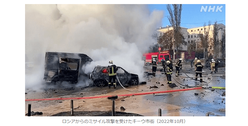 ロシアからのミサイル攻撃を受けたキーウ市街(2022年10月)