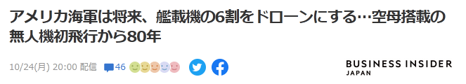 アメリカ海軍は将来、艦載機の6割をドローンにする…空母搭載の無人機初飛行から80年https://news.yahoo.co.jp/articles/fda91e50a6135dbbee8d2f7fb8e119affec5dbd2