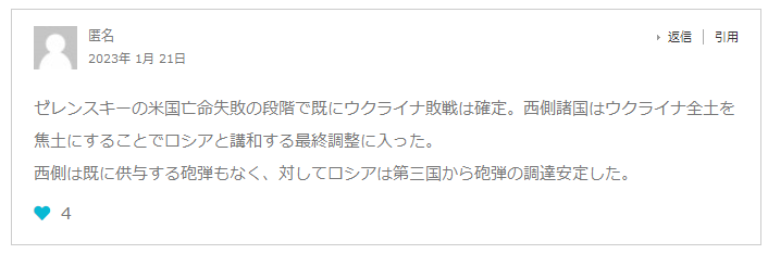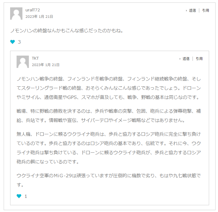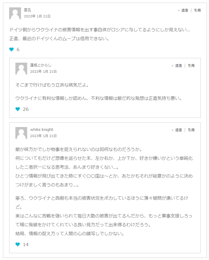 『ドイツのSpiegel誌は20日「連邦情報局が安全保障関係の議員に対する極秘会議で『バフムート方面の戦いでウクライナ軍は毎日3桁台の兵士を失っている』と報告、ここを失えばドネツク州の奥深くに進めるため重大な結果をもたらすと警告している」と報じた。