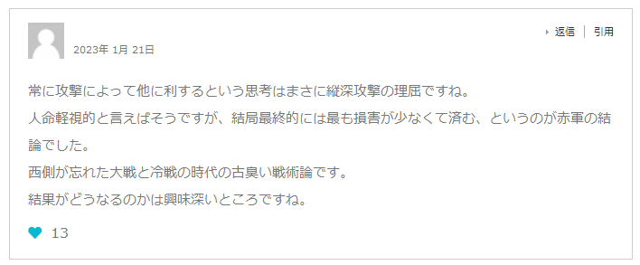 つまりロシア軍は「次から次へと補充される兵士」を戦場に投げ込み、応戦するウクライナ軍の位置や射点を特定、そこに砲弾を叩き込むことで「前進している」という意味になり、人間の命を重視する西側諸国から見れば「割の合わない戦術」と映っても、人間の命を軽視するロシアからすれば「減った兵士(大砲の餌要員)は補充すればいい」と考えているため、ロシア軍の前進を止めるには「大砲の餌」を倒すのではなく「砲兵戦力」を潰すしかないのだろう。