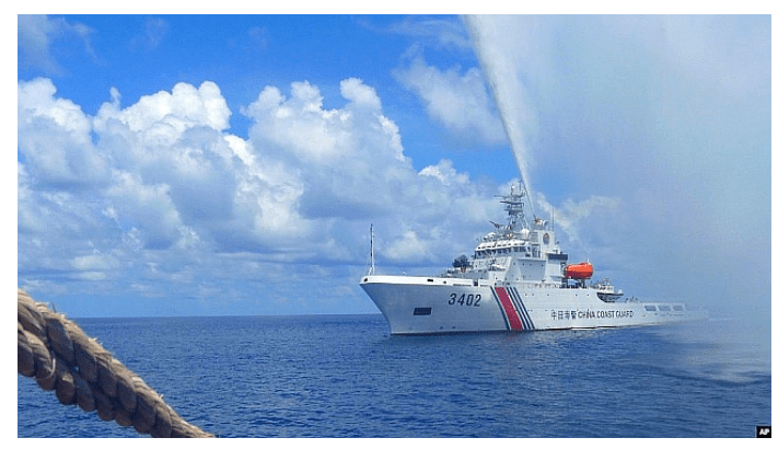 『マルコス大統領の訪中の後、中国海警局船が比漁船を威嚇する事態が2回発生した。最初は南沙諸島セカンドトーマス礁で、次にルソン島東沖のスカボロー礁だった。両礁とも、比の基線から200カイリの内側にあり、中国からは700カイリ離れている。それにもかかわらず、中国の武装船は比の民間船に対し、威嚇し、放水し、砲撃し、銃弾を浴びせようとする。
