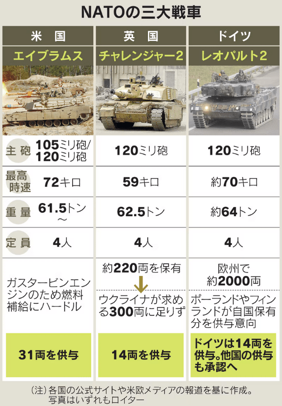昨日取り上げたウクライナへの戦車供与の問題は、ドイツ・アメリカがともに供与する方向で方針転換が図られていることは報道のとおり。