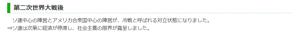 因みにソ連崩壊の原因についてメドヴェージェフ元大統領は「社会主義リアリズムにしがみつき過ぎたためで、これほど早くソ連崩壊を実現させた当時の政治的指導者の動機について深入りはしない」と述べているが、細かい話を抜きぬに一言で言えば「衰退し崩壊した国や周辺国が抱える歪みを調整するため戦争に至るのは歴史的にも必然だが、過去に滅亡しバラバラになった大国と異なりロシアは核兵器を持っているので、ロシアをバラバラしてロシア抜きの世界を作ろうとするなら世界の半分を道連れにする」という意味だ。