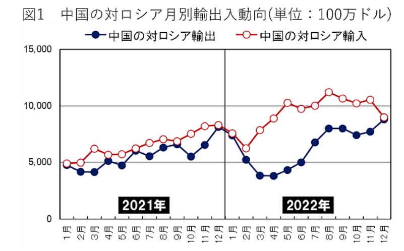 ウクライナへの軍事侵攻開始後、ロシアは貿易統計を国家機密扱いとし、一切公表しなくなった。したがって、露中貿易の動向を知るには、中国側の統計を紐解くしかない。左表を参考に見れば、開戦時に落ち込んだものの、確実に中国の対露貿易は急増している。参照記事