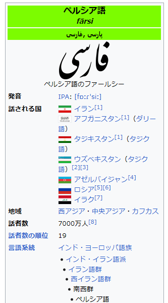 ペルシア語https://ja.wikipedia.org/wiki/%E3%83%9A%E3%83%AB%E3%82%B7%E3%82%A2%E8%AA%9E