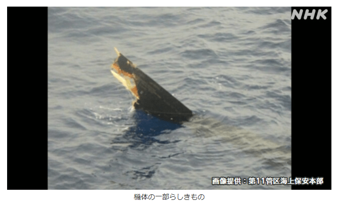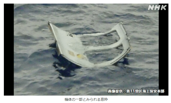 海上保安庁が巡視船を出して捜索したところ、ドアや救命ボートなど機体の一部らしき漂流物が複数見つかっています。