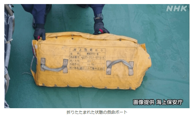 6日午後6時半ごろレーダーから消えた位置から北に4キロほど離れた海域で「陸上自衛隊」と書かれた、折りたたまれた状態の救命ボートが見つかりました。
