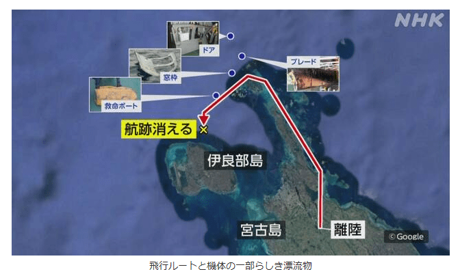 宮古島と伊良部島の間の海上を飛行中にレーダーから航跡が消失。当時、宮古島周辺の風速や視界などの気象状況に問題はなかったとしていて、目視で飛行していたということです。