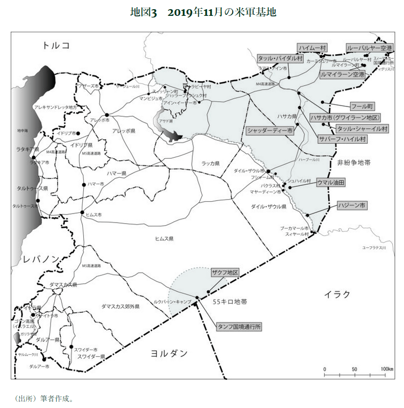 これに従い、米軍は2019年11月から2020年2月にかけて以下14カ所に新たな基地を設置した(Anadolu Ajansı[2020]、Zontur and Aliyev[2019]、Jusūr li-l-Dirāsāt[2020]、地図4)。
