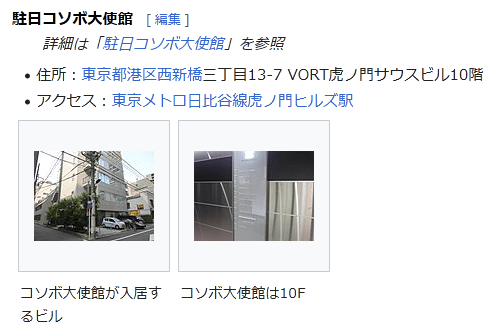 詳細は「日本とコソボの関係」を参照 駐日コソボ大使館 詳細は「駐日コソボ大使館」を参照