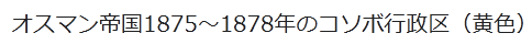 オスマン帝国1875〜1878年のコソボ行政区(黄色)