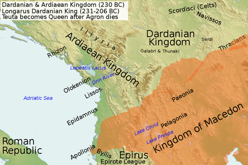 紀元前3世紀〜紀元前1世紀頃のダルダニア王国(黄色)