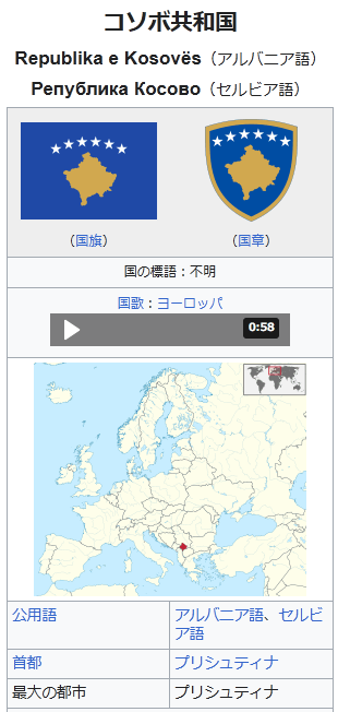 コソボhttps://ja.wikipedia.org/wiki/%E3%82%B3%E3%82%BD%E3%83%9C