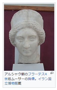 アルシャク朝のフラーテス4世后ムーサーの胸像。イラン国立博物館蔵