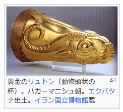 黄金のリュトン(動物頭状の杯)。ハカーマニシュ朝。エクバタナ出土。イラン国立博物館蔵