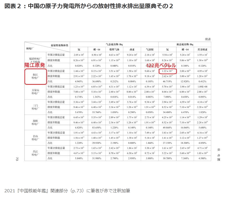 2021『中国核能年鑑』関連部分(p.73)に筆者が赤で注釈加筆