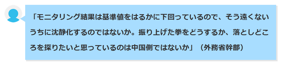 一部に「中国はいま経済的に厳しいので、外敵を作って国民の不満をそらそうとしている」という趣旨の解説が見られるが、スカッとしても建設的ではない。