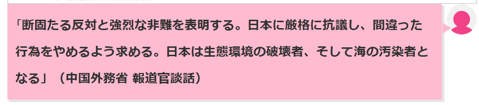 4.中国にまつわる事情:中国は常に日本の核廃棄物放出を厳しく非難し続け、 中国外交部報道官は日本を「極めて利己的で無責任」と非難し、「岸田政権は自国の核汚染の危険の責任を自国内でとらずに世界に責任を負わせている。全人類の長期的な将来や幸福よりも、自分自身の利益だけを考えている」と発言。ここで日本が譲歩すれば、中国の批判が効果的だということになる。したがって、日本側としては、現時点では撤回することはできないと考えている。(以上)