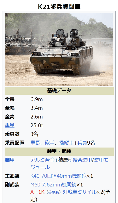 K21歩兵戦闘車https://ja.wikipedia.org/wiki/K21%E6%AD%A9%E5%85%B5%E6%88%A6%E9%97%98%E8%BB%8A