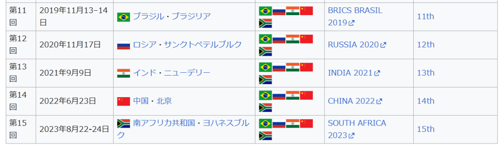 ^ “BRICS、サウジやイランが加盟へ-24年から11カ国体制” (2023年8月24日). 2023年8月24日閲覧。