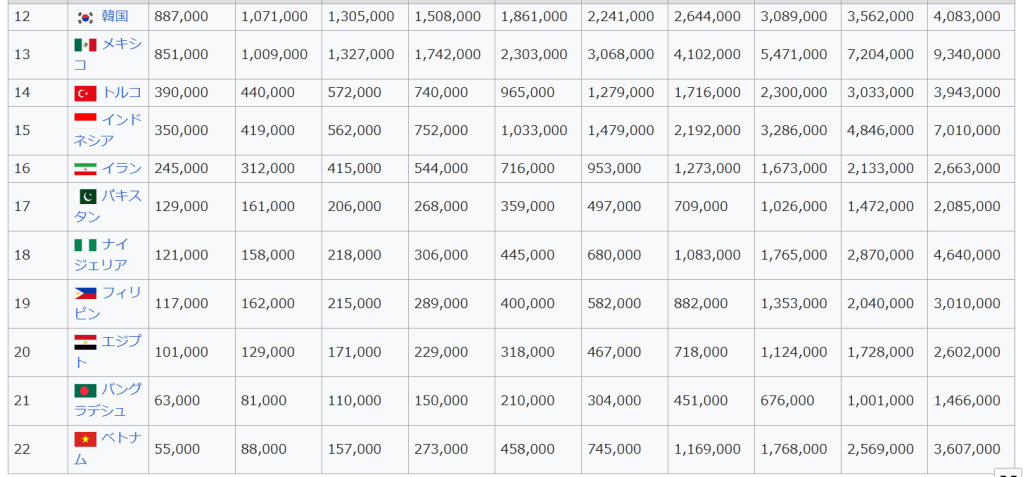 ^ 英: Colombia, Indonesia, Vietnam, Egypt, Turkey and South Africa