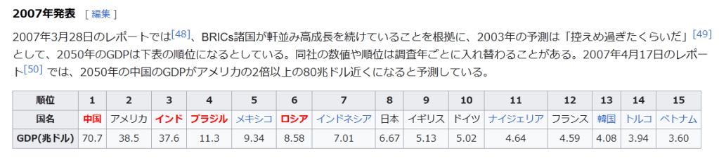 ^ 経済産業省 『通商白書2005』の「第1章第3節 新興工業国の台頭 ~BRICSの成長可能性~ 2005年7月