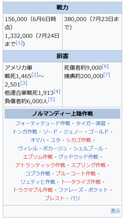フォーティテュード作戦 タイガー演習 トンガ作戦 ソード ジュノー ゴールド オマハ ユタ シカゴ作戦 ヴィレル・ボカージュ シェルブール エプソム作戦 グッドウッド作戦 アトランティック作戦 スプリング作戦 コブラ作戦 ブルーコート作戦 リュティヒ作戦 トータライズ作戦 トラクタブル作戦 ファレーズ・ポケット ブレスト パリ
