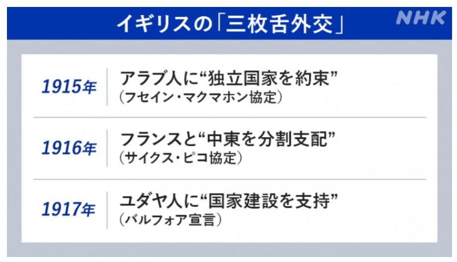 歴史上、悪名高い「三枚舌外交」と呼ばれるものです。