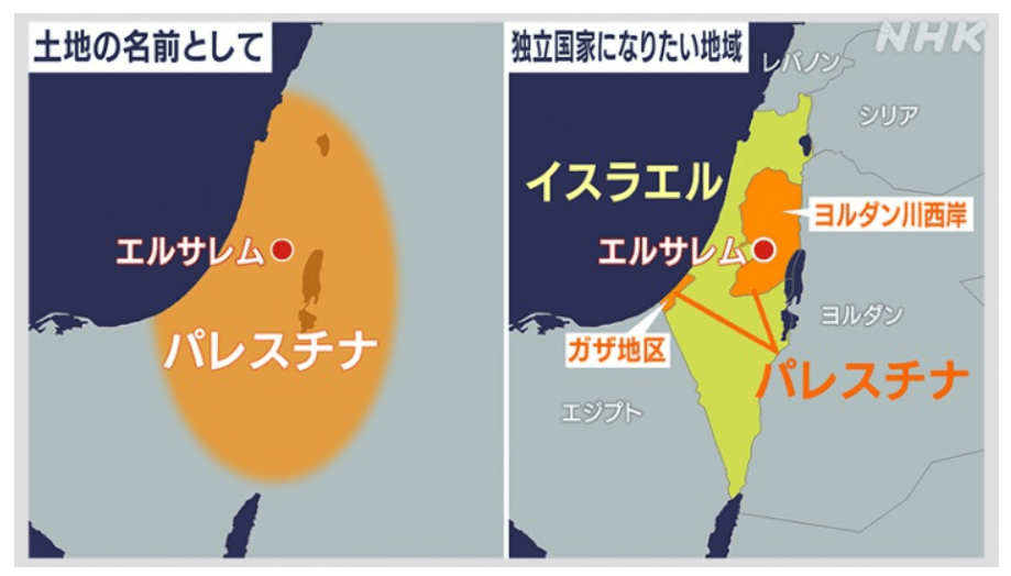その後は、この土地の中で〝将来、パレスチナ人の国家になりたい地域”(東エルサレム・ヨルダン川西岸・ガザ地区)を総じて、パレスチナと呼んでいます。