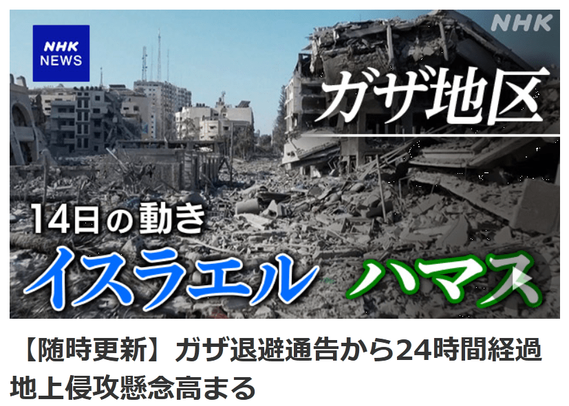 日本時間の14日午前6時にはイスラエル軍が24時間以内にガザ地区北部の住民が南部に退避するよう国連に通告した期限を迎えました。