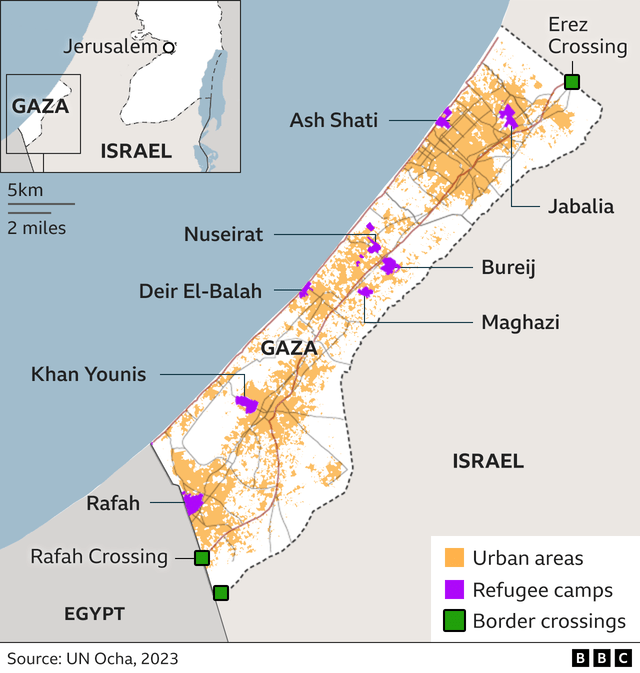 国連機関によると、10月7日以降、ガザでは約170万人が避難している。また、レーダー衛星データの分析によると、ガザ北部とガザ県の建物の最大50%が被害を受けた。英文記事