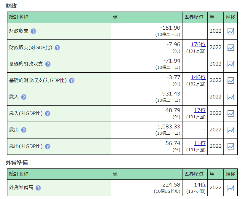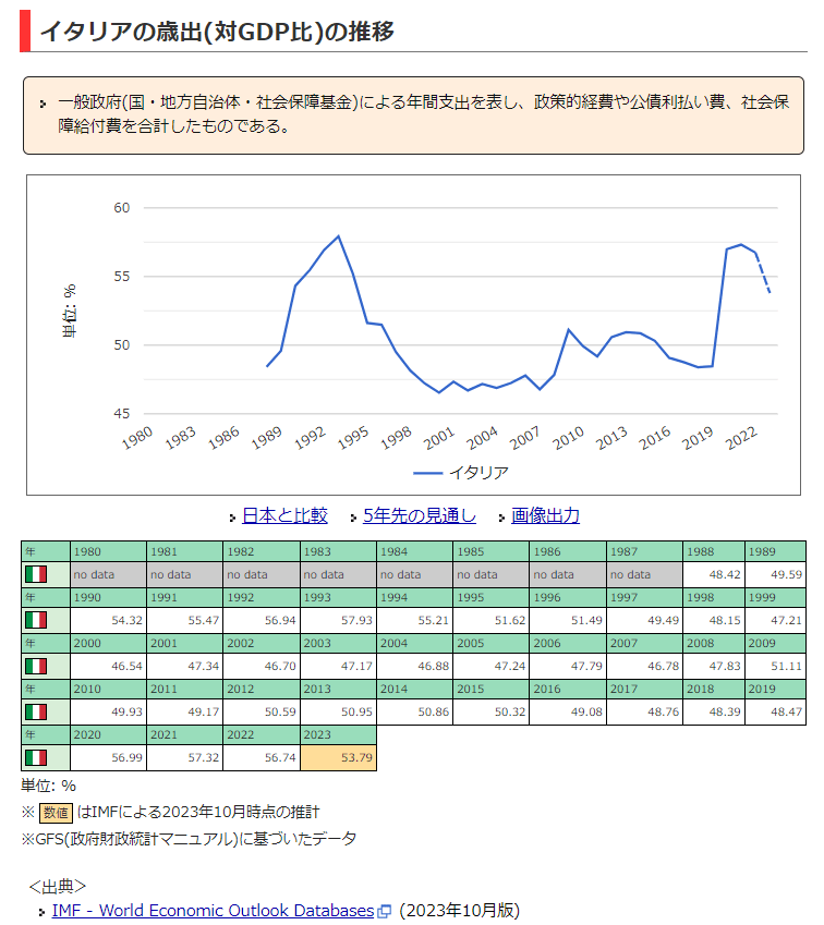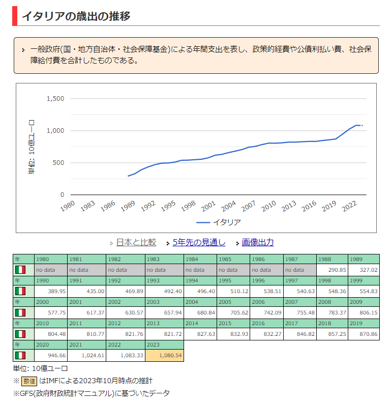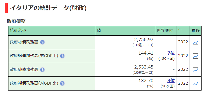 イタリアの財政(世界の経済・統計 情報サイト)