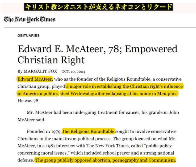今回のガザ攻撃もネタニヤフ政権を支援しているキリスト教シオニストはネオコンとも結びついている。このネオコンが台頭したのは1970年代の半ば、ジェラルド・フォード政権の時代だ。