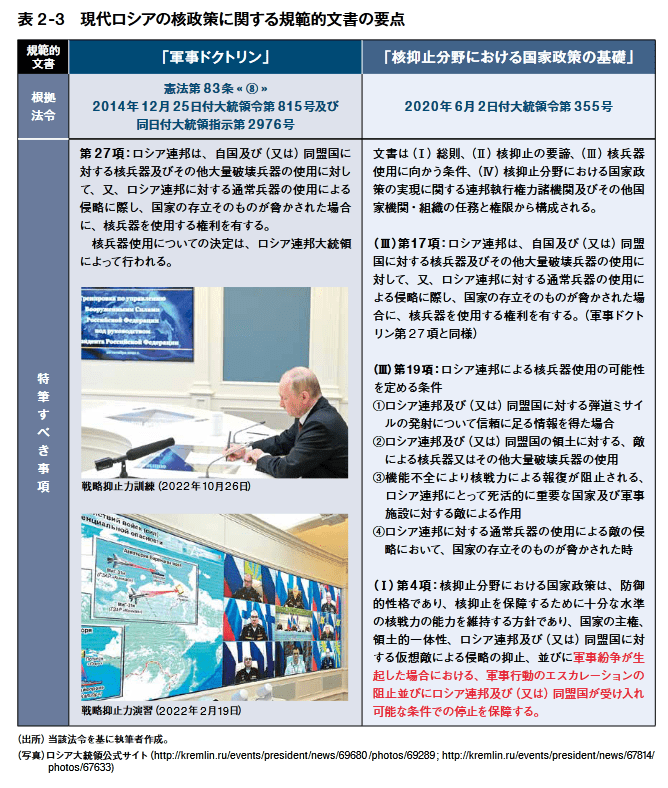この点についてNPR2022では、米国の目標が「核エスカレーションに依拠した限定戦争とい う戦略についての敵の自信を弱体化させることにより、地域戦争における抑止を強化し潜在的敵 の核の敷居を上げること」であるとしているゆ。