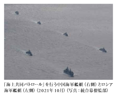 海空域における中露両軍•準軍事組 織の共同行動を注視するとともに、この戦略的要衝をめぐる中露間の駆け引き、すなわち協調と 牽制の度合いについても慎重に見極める必要がある。
