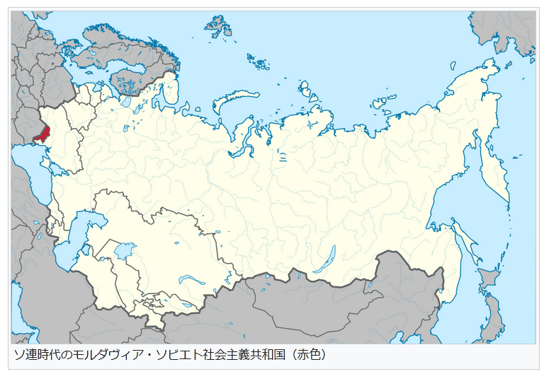 ソ連時代のモルダヴィア・ソビエト社会主義共和国(赤色)