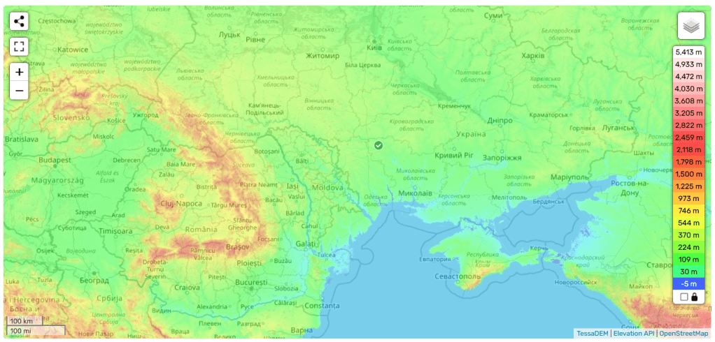 低地の多い南側[1]は黒海に面している。