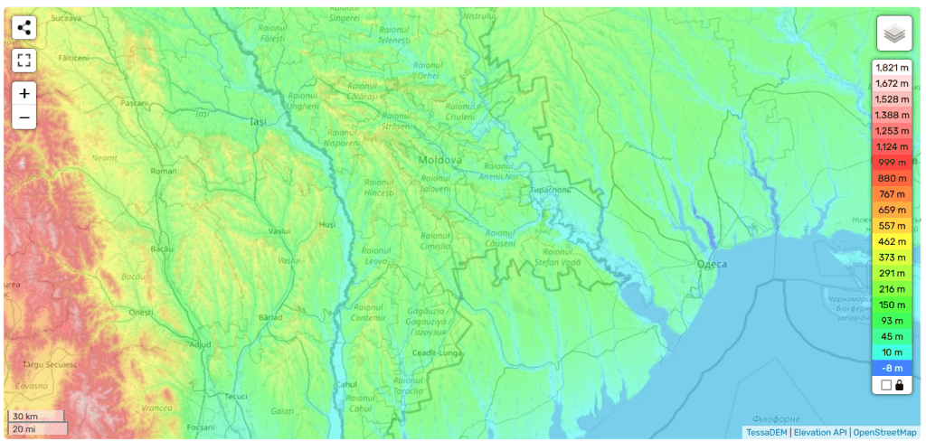 高地の多い北側[1]と東側はドニエストル川で区切られ、西側はプルート川が流れ[1]河口付近でドナウ川と合流する。
