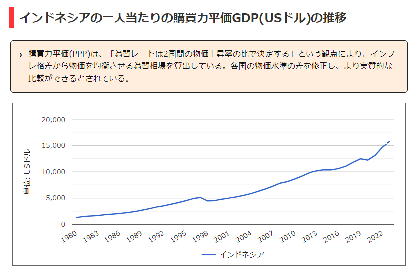 インドネシアは世界銀行の分類で上位中所得国に位置付けられています。2020年に基準に到達し、下位中所得国から引き上げられました。