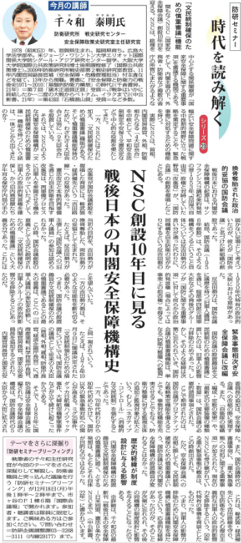 間もなくNSC(国家安全保障会議)創設10年目…。