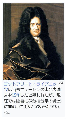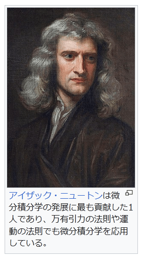 ^ ニュートンの微分積分の最初の論文「De methodis serierum et fluxionum(級数と流率の方法について)(英語版)」は1666-1671年に記載され、没後10年後(1736年)に公刊された。次の論文「曲線の求積論」は1704年に『光学 (アイザック・ニュートン)』の初版の付録として公刊。ライプニッツの微分法の論文「Nova Methodus pro Maximis et Minimis(英語版)は1684年に専門雑誌「Acta Eruditorum(英語版)」に発表された。ライプニッツ‐ニュートン微分積分論争(英語版)も参照。