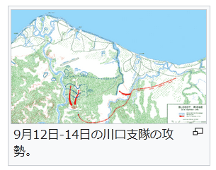 8月20日18:00にイル川を越えて先行していた将校斥候(渋谷大尉・館中尉ら)34名中31名が、アメリカ海兵隊の攻撃により戦死の憂き目に遭った。