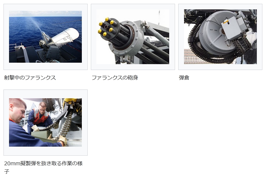 ファランクス (火器)https://ja.wikipedia.org/wiki/%E3%83%95%E3%82%A1%E3%83%A9%E3%83%B3%E3%82%AF%E3%82%B9_(%E7%81%AB%E5%99%A8)